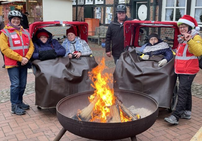 Große Freude bei den Eheleuten Adomat in Lienen Gisela Wiemann (5. v. r.) mit Freundinnen habe heimlich eine Rikscha Fahrt für das Goldene Hochzeitspaar organisiert Am 2. März 2023 feierten die Eheleute Adomat ihre Goldene Hochzeit. Gisela Wiemann und Freundinnen organisierten heimlich eine Rikscha Fahrt bei „Radeln ohne Alter“ und die Freude bei den beiden…