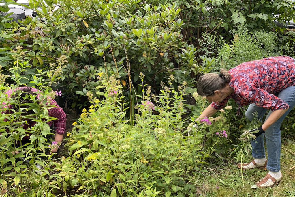 Die intensive Vorbereitung und Durchführung der Hundertjahrfeier sowie gesundheitliche Einschränkungen einiger Mitglieder der Gartengruppe hatten dazu geführt, dass unerwünschter Bewuchs im Heimathausgarten überhandgenommen hatte. In dieser Situation ergriff Karin Büscher die Initiative und rief die Vereinsmitglieder zu einem außergewöhnlichen „Frühjahrsputz im Spätsommer“ auf.