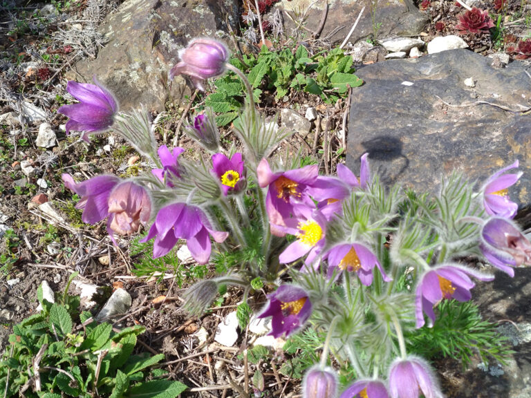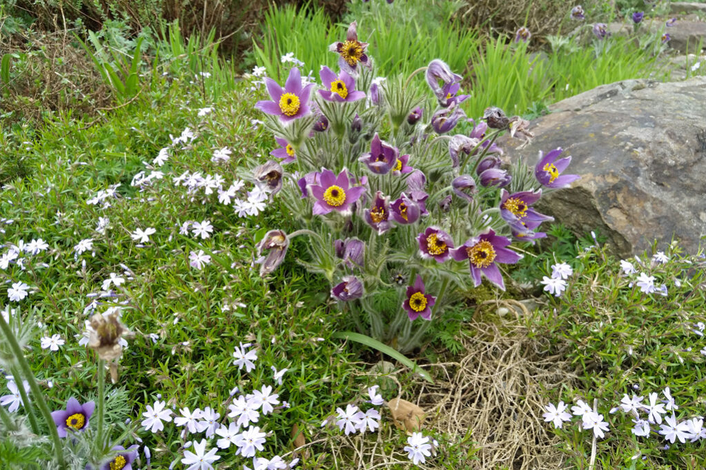 Regelmäßig im März blühen Hunderte von Küchenschellen im Vorgarten von Egon und Irmgard Dickau in Westerkappeln. Die aus einer Kreuzung wohl zufällig entstandene Küchenschellensorte fühlt sich im alpin angehauchten Vorgarten der Dickaus so wohl, dass sie sich selbst in den Fugen der Straßenauffahrt ausbreitet.