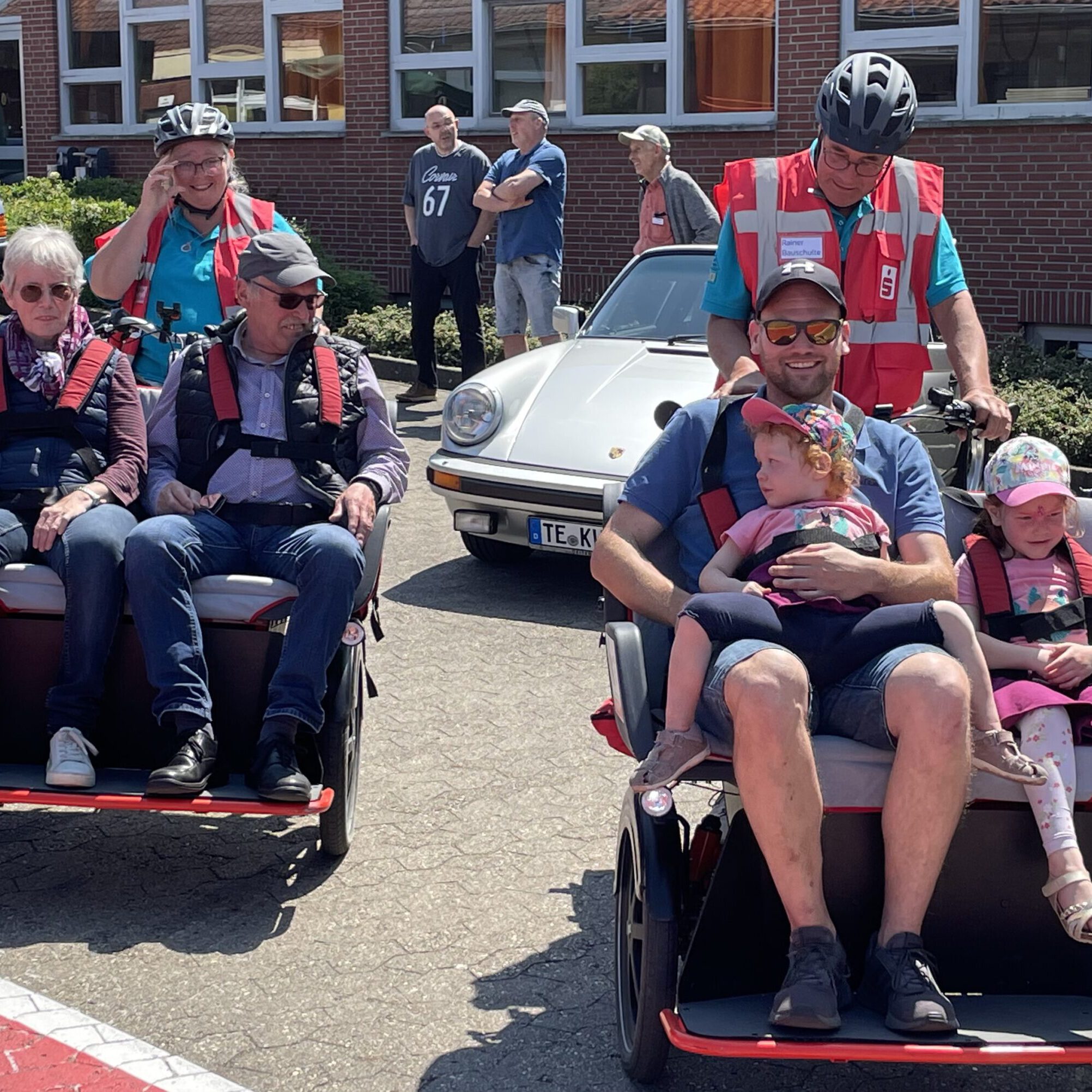 Der Heimatverein Lengerich unterstützt die Ledder Werkstätten beim Tag der Begegnung mit seinem Pilotenteam von Radeln ohne Alter
