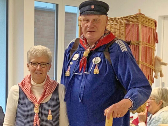 Bei nasskaltem Winterwetter gab es jüngst überraschenden Besuch von zwei Vertretern des Lengericher Heimatvereins für die Gäste der beiden Tagespflegen der Haus-Widum-Gruppe, die sich in den neuen Räumlichkeiten der Tagespflege „Hofgarten“ (Im Hook 17) zu einem gemütlichen Wegge-Essen getroffen hatten.