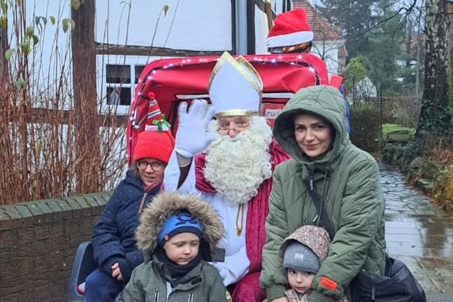 Der Nikolaus zog mit seiner festlich geschmückten Rikscha durch die Fußgängerzone von Lengerich und sorgte für strahlende Kinderaugen.