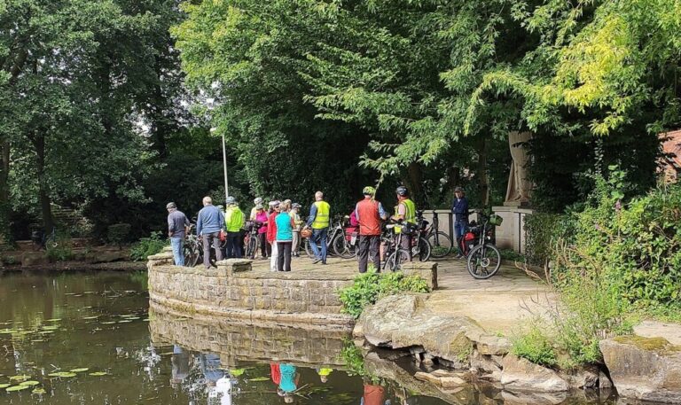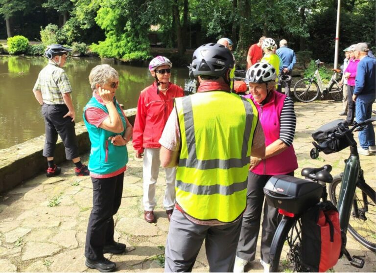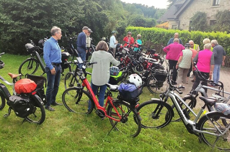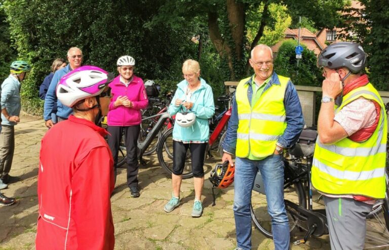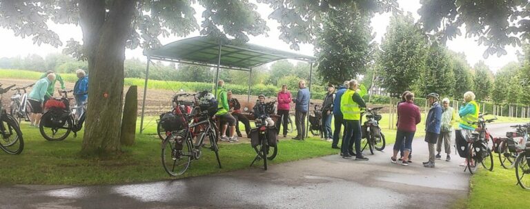 Der Himmel schloss seine Schleusen, als die Radlerscouts Margrit,- Joachim Spuhn und Georg Schlingmann diesmal die Radfahrgruppe nach Bergeshövede zum „Nassen Dreieck“ führten. Störche flankierten bei Brochterbeck den Weg. Es ist allerdings davon auszugehen, dass an diese Begegnung nach 9 Monaten niemand nochmals erinnert werden wird.