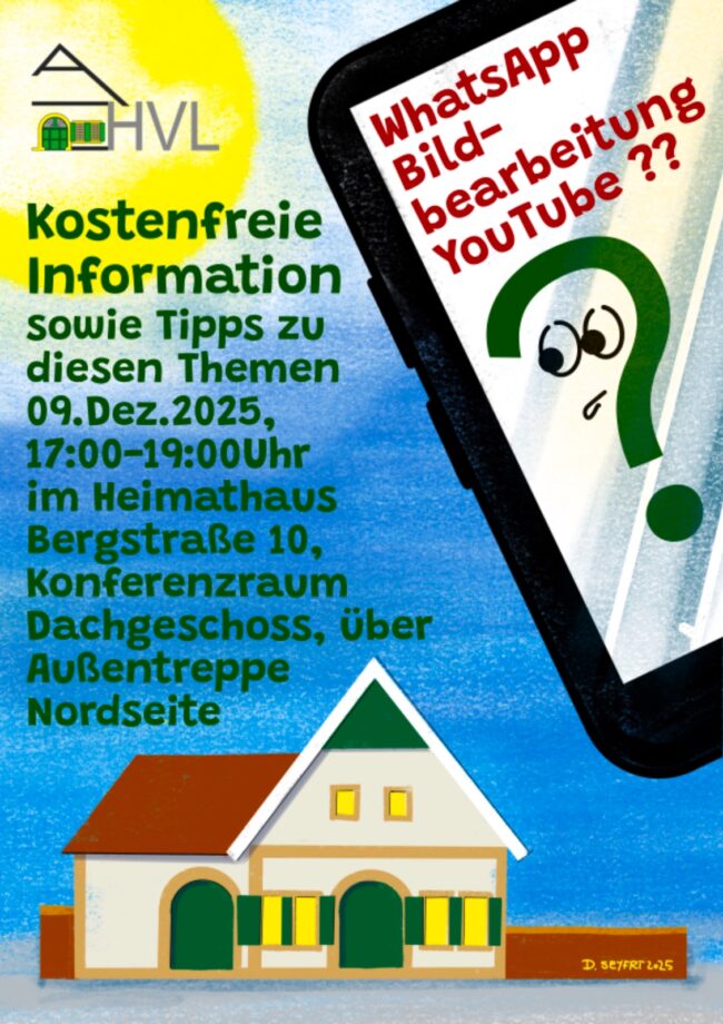 Auf Wunsch vieler Mitglieder findet diese Informationsveranstaltung der Gruppe „Digital“ für Smartphone, Tablet und PC satt. Es werden interessante und einfache Finessen mit den Software WhatsApp, Bildbearbeitung und YouTube kostenlos übermittelt.
