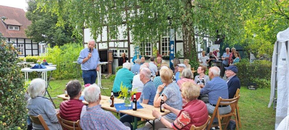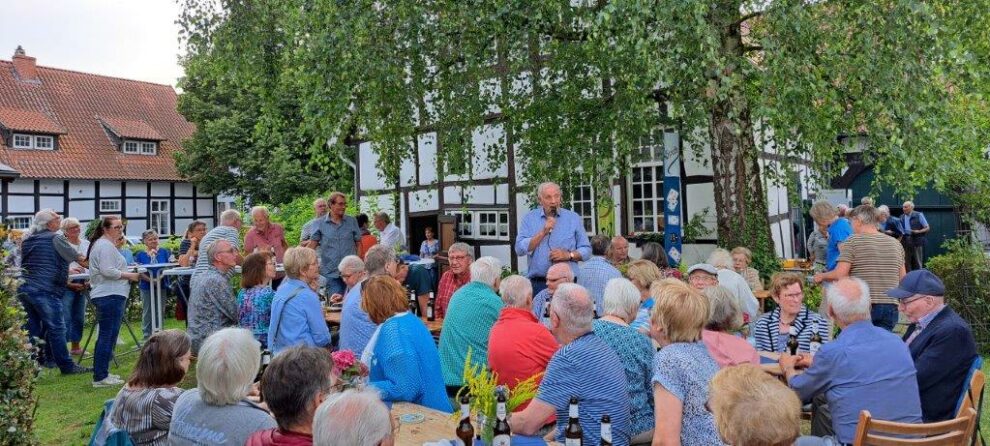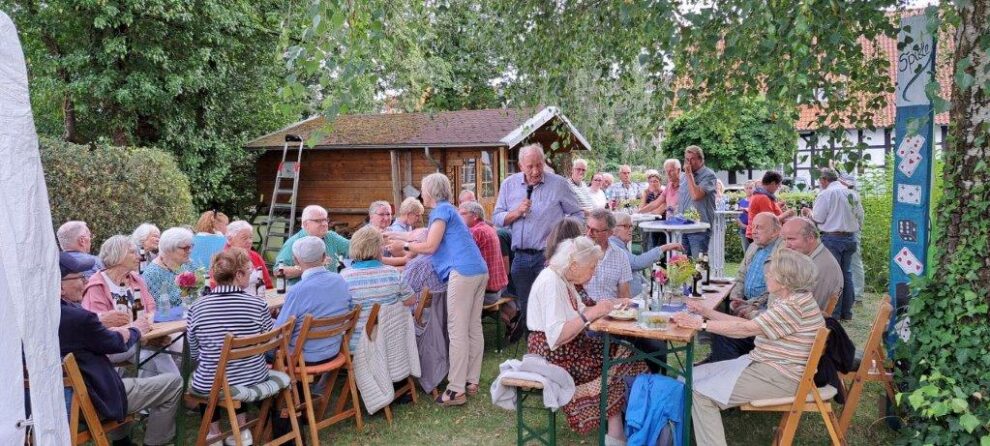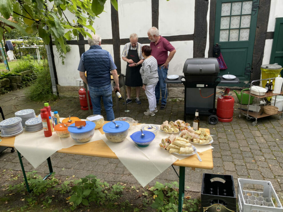 Zum traditionellen Grillabend am letzten Freitag im Juli haben sich viele Heimatfreundinnen und -freunde am Heimathaus getroffen. Wo tags zuvor der Regen sorgenvolle Minen bei den Verantwortlichen hinterließ, legte die Sonne den Grundstein für eine gelungene Veranstaltung. Viele Fleißige Helferinnen und Helfer hatten den Heimathausgarten liebevoll hergerichtet und für ein großartiges Buffet gesorgt. Dank der Initiative von Hanna Steckling wurden auch die Bedürfnisse der Vegetarier voll und ganz erfüllt.