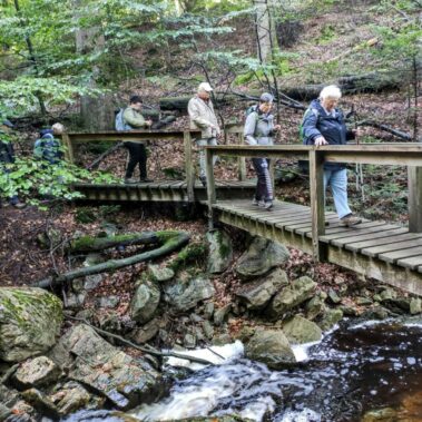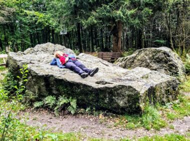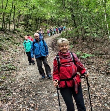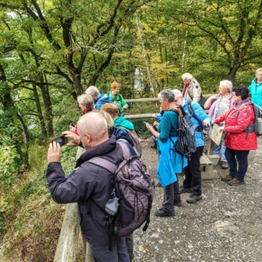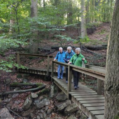 Gut gefrühstückt und gelaunt wurden verschiedene Wanderungen im Eifelland um die „Hohe Venn“ bei Belgien absolviert. Die Wanderwege führten entlang der Flüsse „Hill“, „Gritzbach“, die Weser (diese mündet allerdings in die „Ourthe“, nicht bei Bremen), „De Geul“ sowie die „Rur“ (hier ohne „h“ geschrieben) und um die dortigen Talsperren Rur und Wesertalsperre. Bei dem ersten Wanderweg durch das „Hilltal“ hätte so manche Gams den Rückweg angetreten, nicht aber die mutige Wandergruppe! Die urige Landschaft erinnerte an „Hoppingen“, in dem Film „Herr der Ringe“. Den vom Wetterbericht angekündigten Regen hielten die Wolken all die Tage tapfer fest, oder sie blieben gar vor der Eifel stehen.