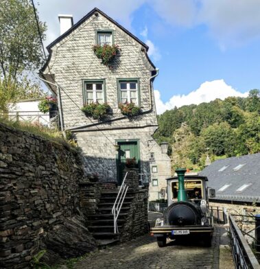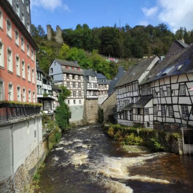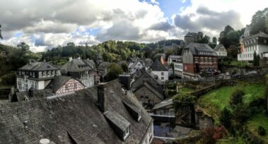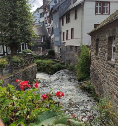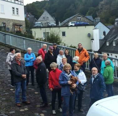 Dirk und Peggy Plate führten diesmal die 22-köpfige Wandergruppe bei frischen Herbsttemperaturen in die Eifel, zum netten Ort Monschau. Nach einer störungsfreien Anfahrt über die A1 und A4 wurde die trickige Zufahrt zum Hotel „Besttime“ gefunden, ein PKW drehte vorher noch schnell eine Ehrenrunde. Zunächst sah man von oben nur schwarze Schieferdächer, aber dann entpuppte Monschau sich zu einem netten Örtchen mit kleinen Geschäften und man staune, voll besetzten und vielen kleinen, altertümlichen Restaurants.